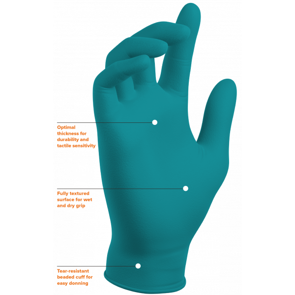 Large Teal Nitrile Exam (Model PF-95TL) Mil 5.8 Full Texture ,Length 9.5" Powder Free (100/bx, 10bxs/cs)